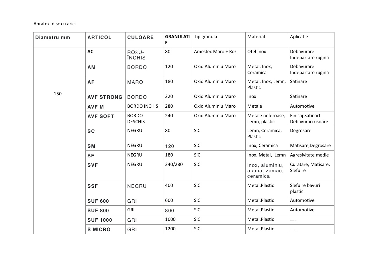 Aplicatii - potrivite pentru finisare, satinare, slefuire, indepartarea reziduurilor de vopsea sau zgarieturi, utilizat in diferite sectoare: metal, lemn, vopsele, materiale plastice, ceramica.